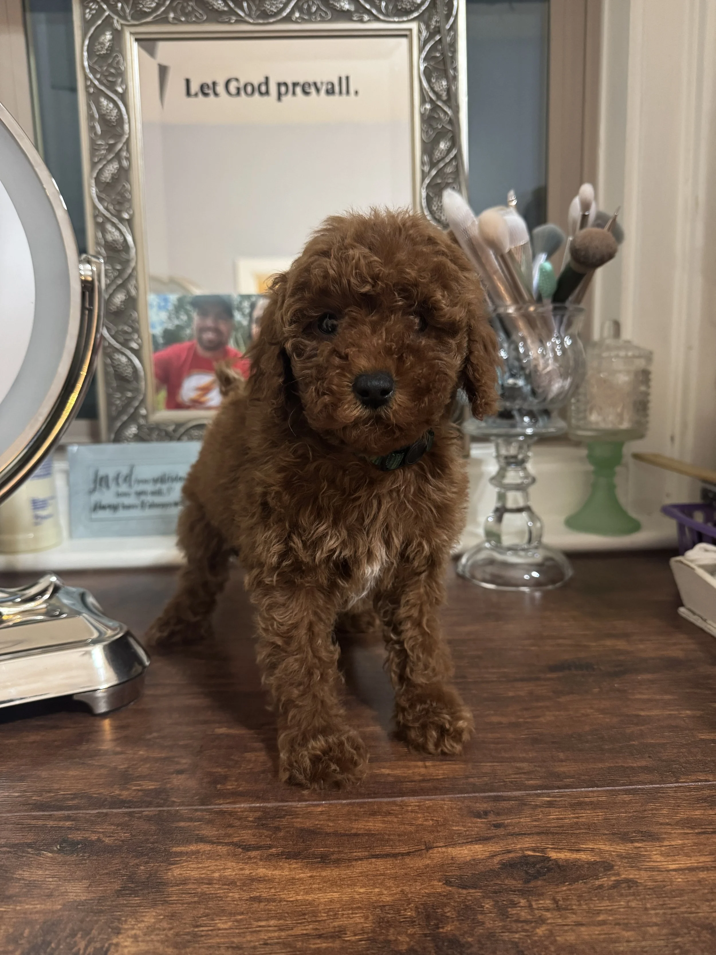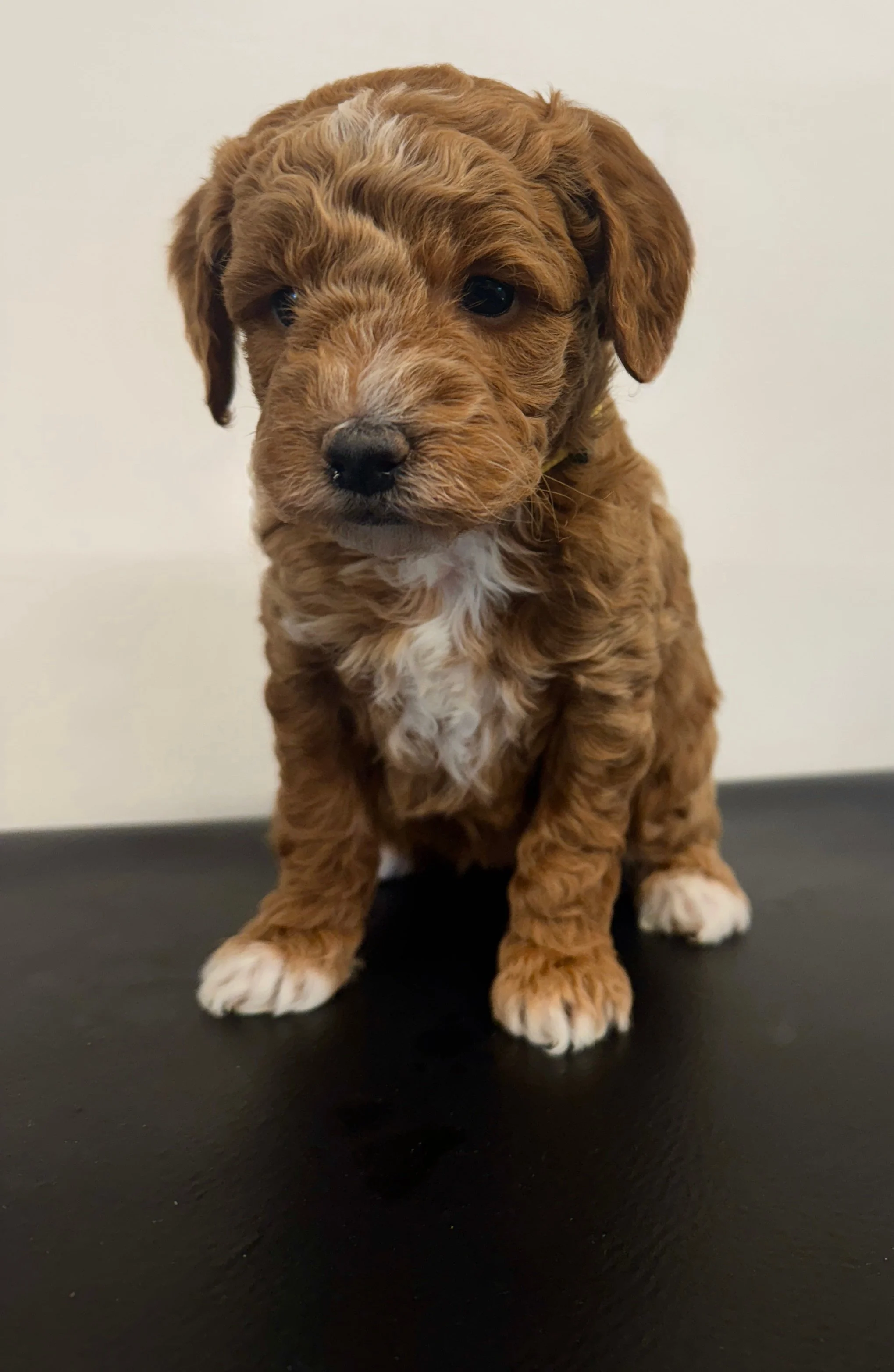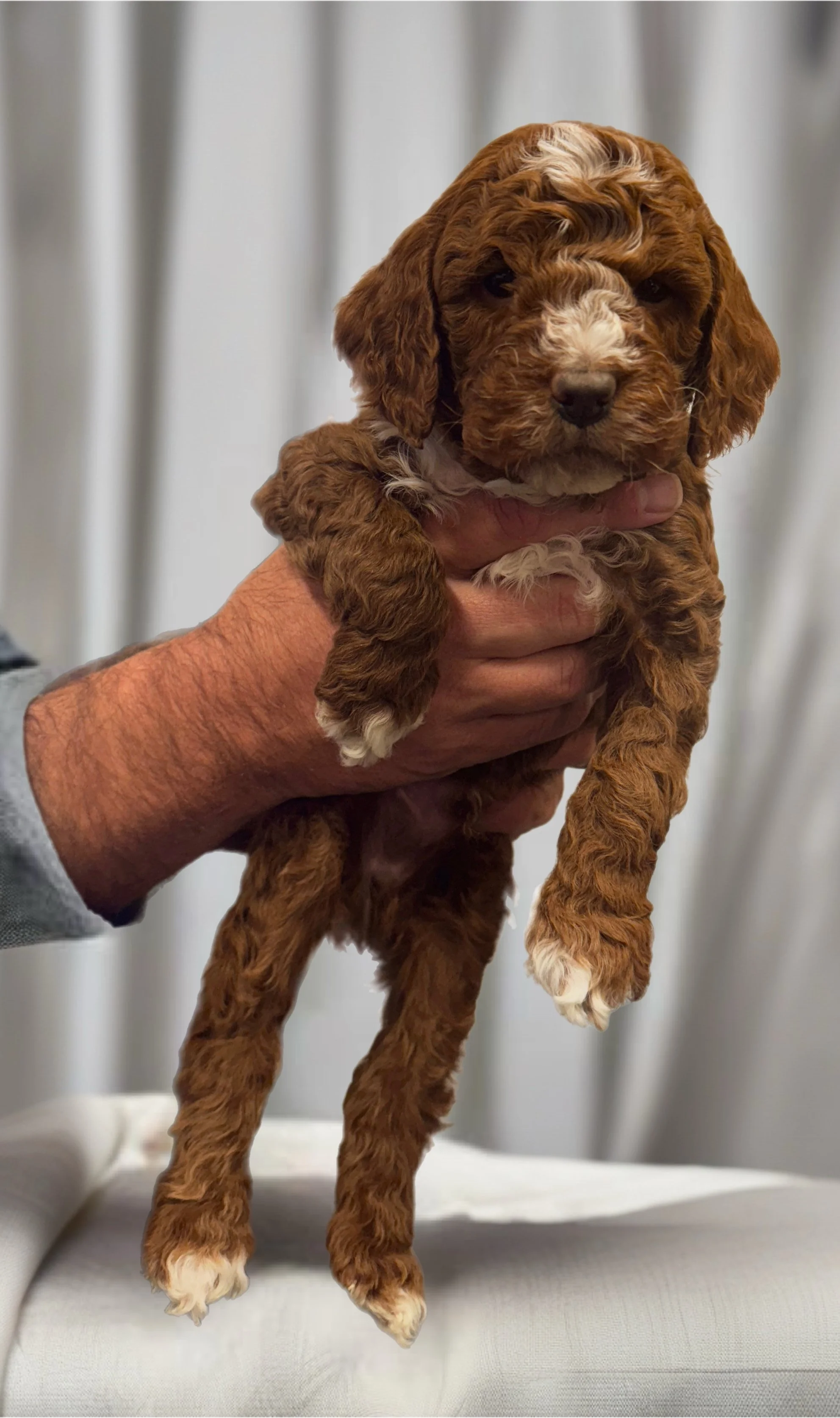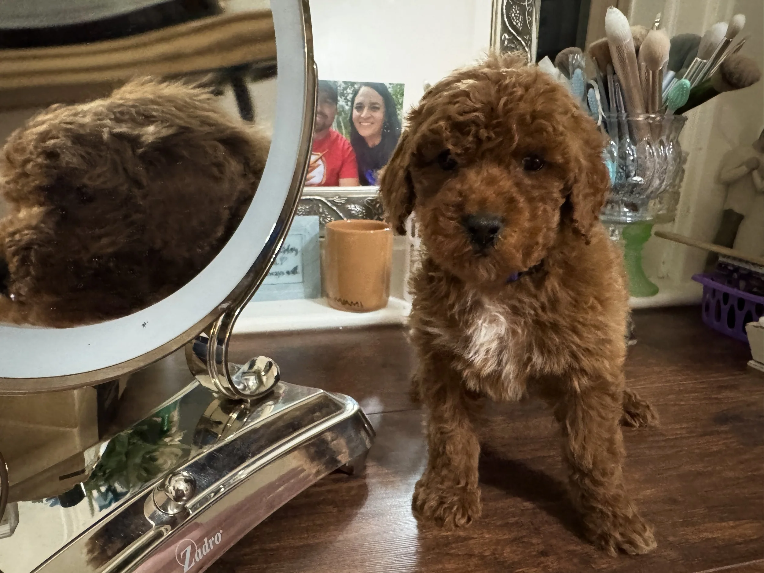 Miss Lottie and Goose have welcomed 7 beautiful Red abstract Miniature Poodle babies on October 5th, 2025! These darlings will be ready to come home to you beginning November 26th, 2025. we currently have 2 females and 2 male spots open for deposits!